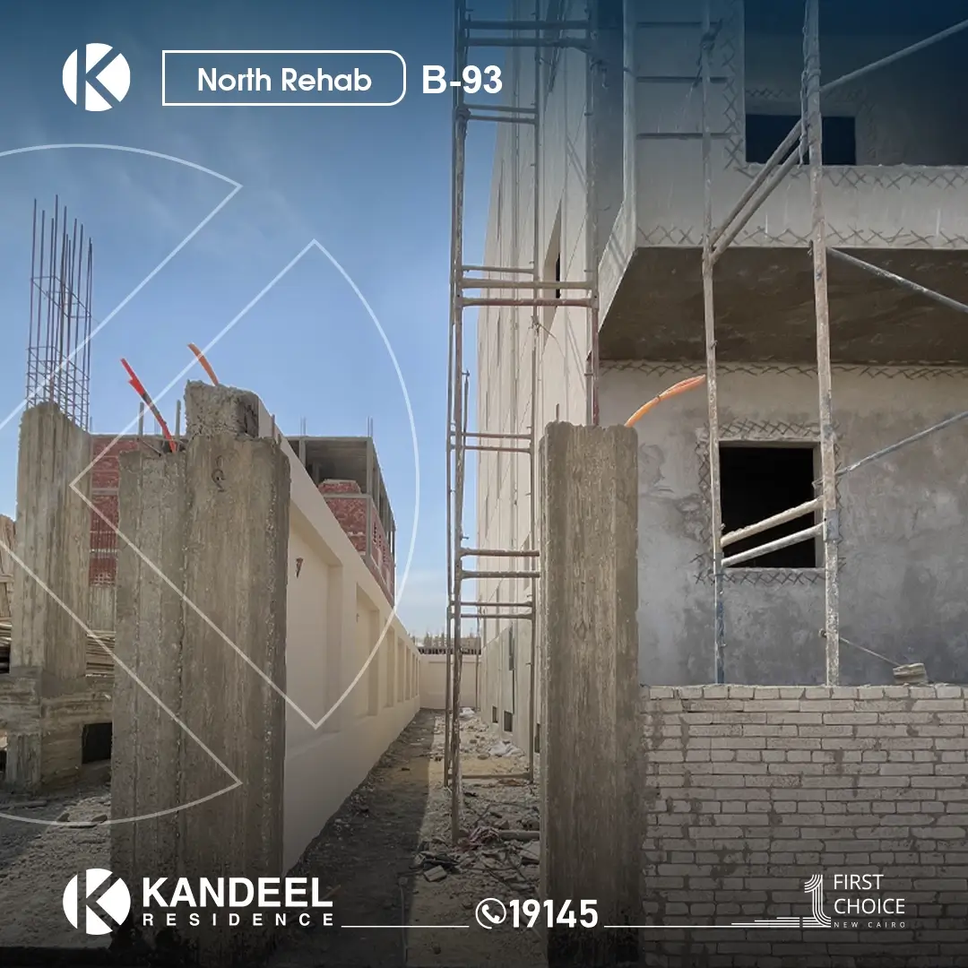 قطعة 93B في شمال الرحاب — جارى تشطيب الواجهة الأمامية. Kandeel Developments تواصل التنفيذ وفق الجدول الزمني المحدد، التزامًا بمعايير الجودة والتسليم في الموعد.
