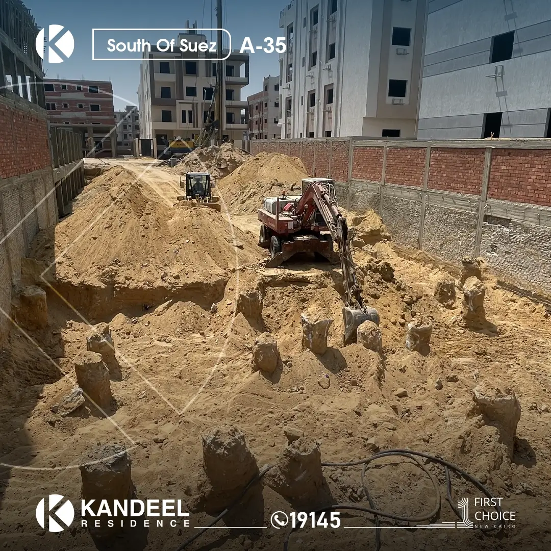مشروع A35 في جنوب السويس — جارى الانتهاء من أعمال الخوازيق. Kandeel Developments تواصل التنفيذ وفق الجدول الزمني المحدد، التزامًا بمعايير الجودة والتسليم في الموعد.