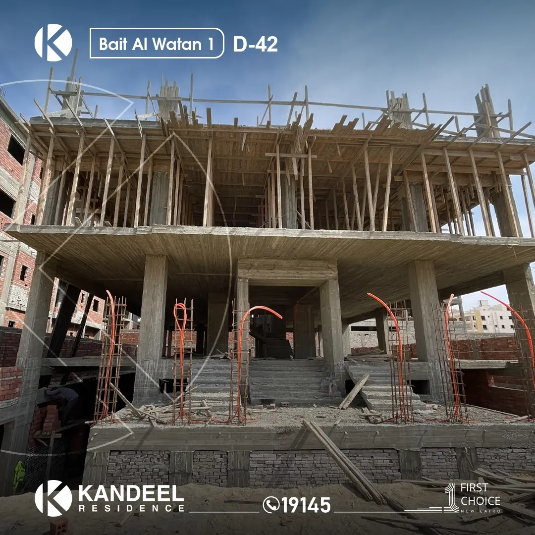 تحديث إنشائي | قطعة D42 في بيت الوطن – الحى الأول | جارى أعمال سقف الدور الثانى. قنديل للتطوير العقاري في سباق مع الزمن لتسليم مشاريعها وفق أعلى معايير الجودة.